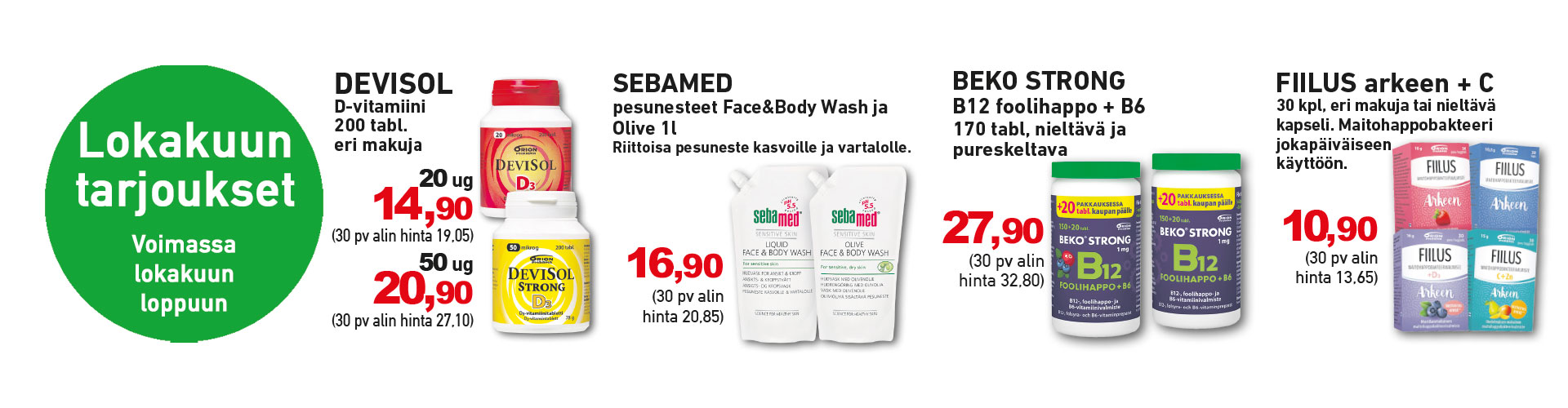 Käytössäsi on myös verkkoapteekkimme, jonka kautta voit tilata tuotteet ja noutaa ne ilman toimituskuluja apteekkimme noutoautomaatista tai suoraan apteekistamme. Vaihtoehtoisesti voit tilata tuotteet myös kätevästi Postin noutoautomaattiin tai toimipisteeseen.